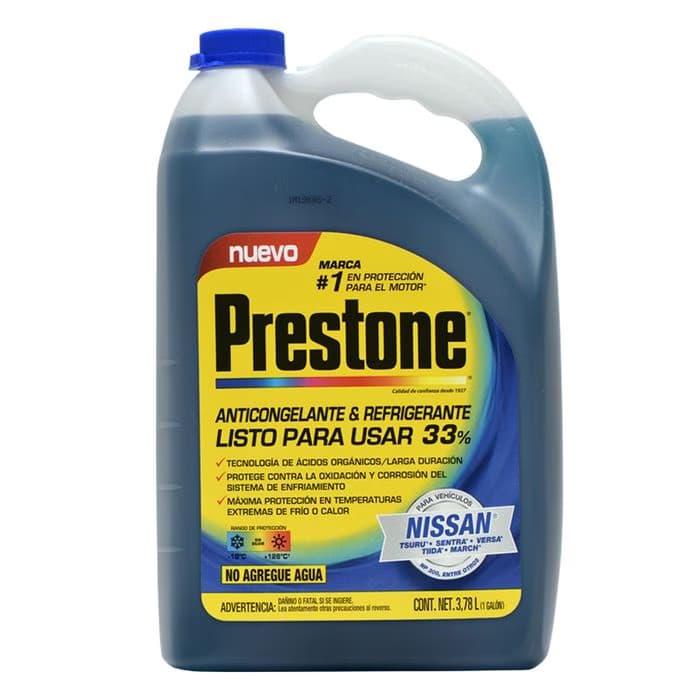 Prestone® Anticongelante y Refrigerante Azul esta especialmente formulado para usarse en vehículos NISSAN®.
